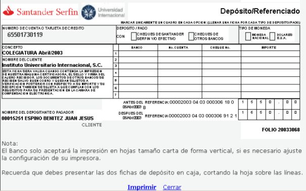Nota Importante: La ficha de depósito puede variar de acuerdo al diseño