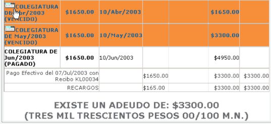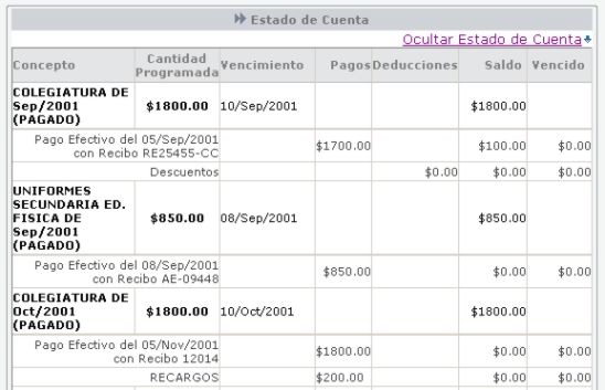 por pagar, desgloce de subsidios (o becas) y pagos realizados.