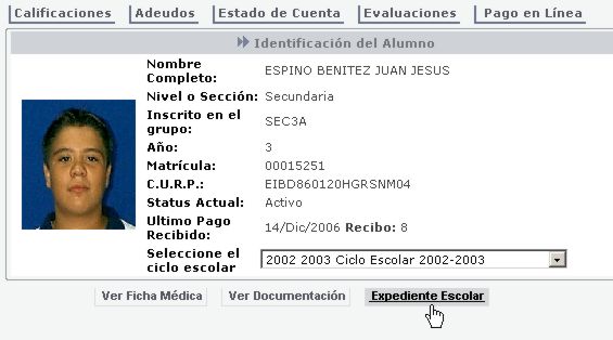 Desde la ficha del alumno, haga "clic" en la pestaña [Expediente Escolar].